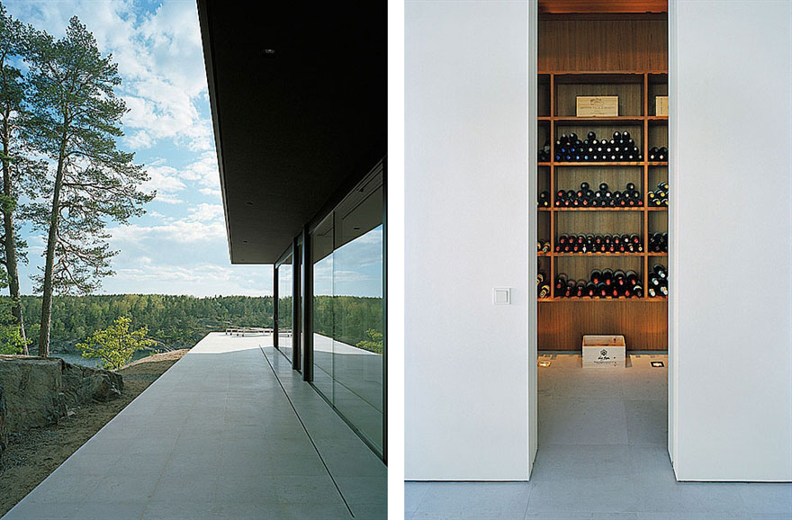 Villa Abborrkroken is Located in the archipelago of Varmdo, in Stockholm Country, Sweden. The 2,700 square-foot dream home designed by architect John Robert Nilsson is suspended on a rocky plateau 75 feet above the lake.
